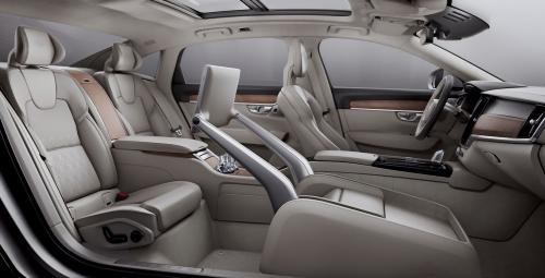 Luxusné vozidlo S90 Excellence obsahuje tiež ovládacie rozhranie s dotykovou obrazovkou pre zadné sedadlá, vstavaný chladiaci priestor a ručne brúsené krištáľové poháre od renomovaného švédskeho výrobcu skla Orrefors.