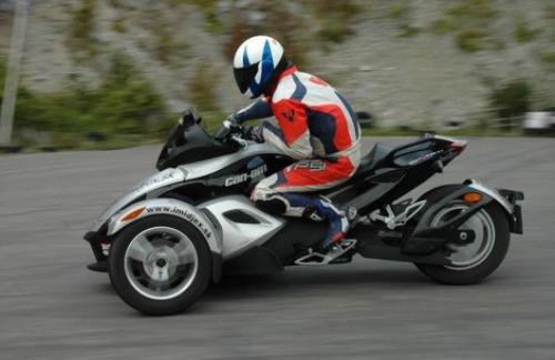 V prvých rýchlejších zákrutách som pochopil, že si treba vytvoriť vlastný štýl jazdenia. V mojom prípade najlepšie fungovalo presunutie váhy na vnútorné predné koleso. Nesadla mi jazda so štvorkolkovým vysadaním, ani jazda na "koleno". Spyder v zákrutách ochotne spolupracoval. Teda spolupracoval perfektne, až keď sa jazdec trochu zresetoval z jazdy na motorke. Podvozok Spydera je mäkší, na pohodové jazdenie ako stvorený. Keď ho chcete v točkách vyobracať, treba sa do neho doslova zahryznúť a pomáhať si telom. Potom je aj športový.
