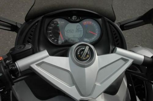 Ďalšou vecou, ktorú treba spomenúť, je prehľadná palubovka, kde jazdec vidí analógový aj digitálny ukazovateľ rýchlosti a otáčok, zaradený prevodový stupeň, hladinu paliva v nádrži a priemernú spotrebu. Prístrojový panel ako celok pôsobí prehľadne a čitateľne.